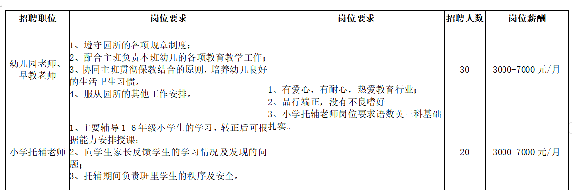 招聘岗位需求表