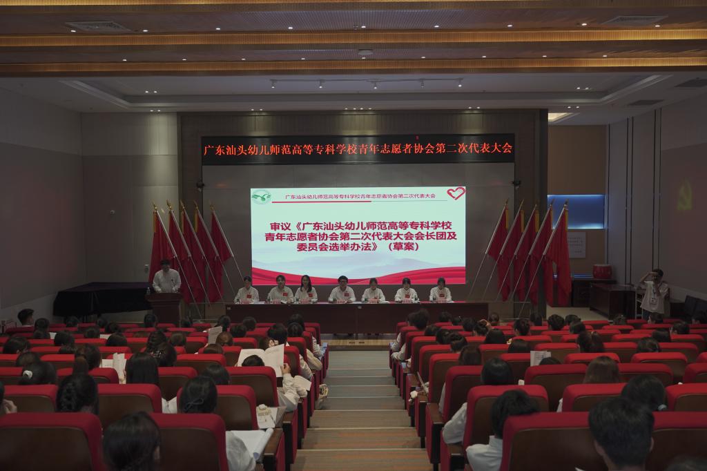 2025年10月15日下午,广东汕头幼儿师范高等专科学校青年志愿者协会第二次代表大会在学术报告厅隆重举行。本次大会由郑宇情同学主持,分为预备会议、四次正式会议及代表团讨论会议,全面回顾了过去一年的志愿服务工作,并选举产生了新一届会长团成员及委员会委员,为学校青年志愿者事业的发展注入了新的活力。