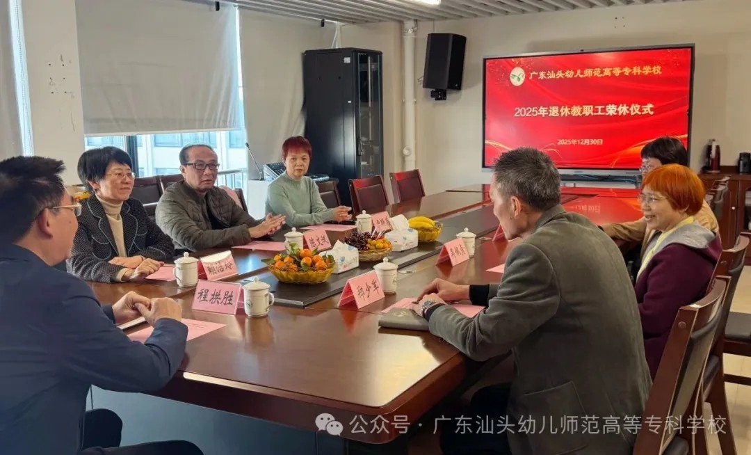 12月30日,广东汕头幼儿师范高等专科学校为2025年退休的教职工举行了荣休仪式。学校党委书记、校长程拱胜出席会议并讲话,党委委员、副校长赖洁玲、郑少军出席会议,会议由赖洁玲副校长主持。部分退休教职工代表参加会议。