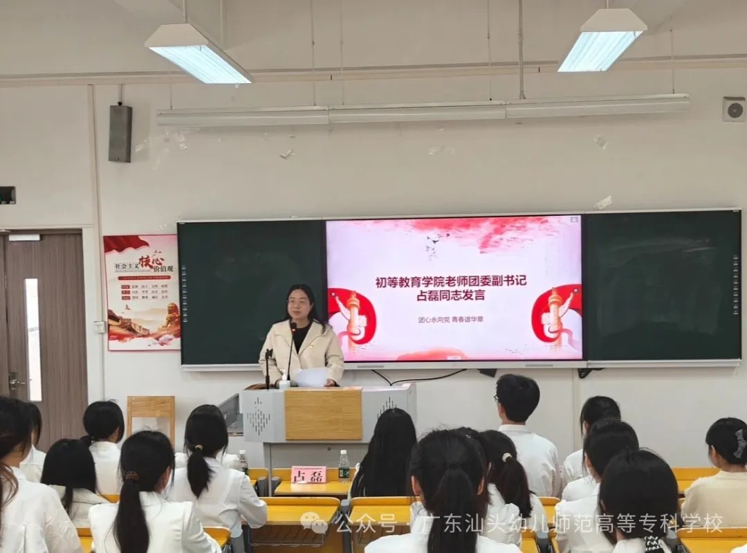2025年12月24日,广东汕头幼儿师范高等专科学校初等教育学院2025年秋季新团员入团仪式在本部校区隆重举行。学院团委书记李翊嫦老师,副书记占磊老师出席会议,仪式由学院团委组织部部长侯蔚同学主持。